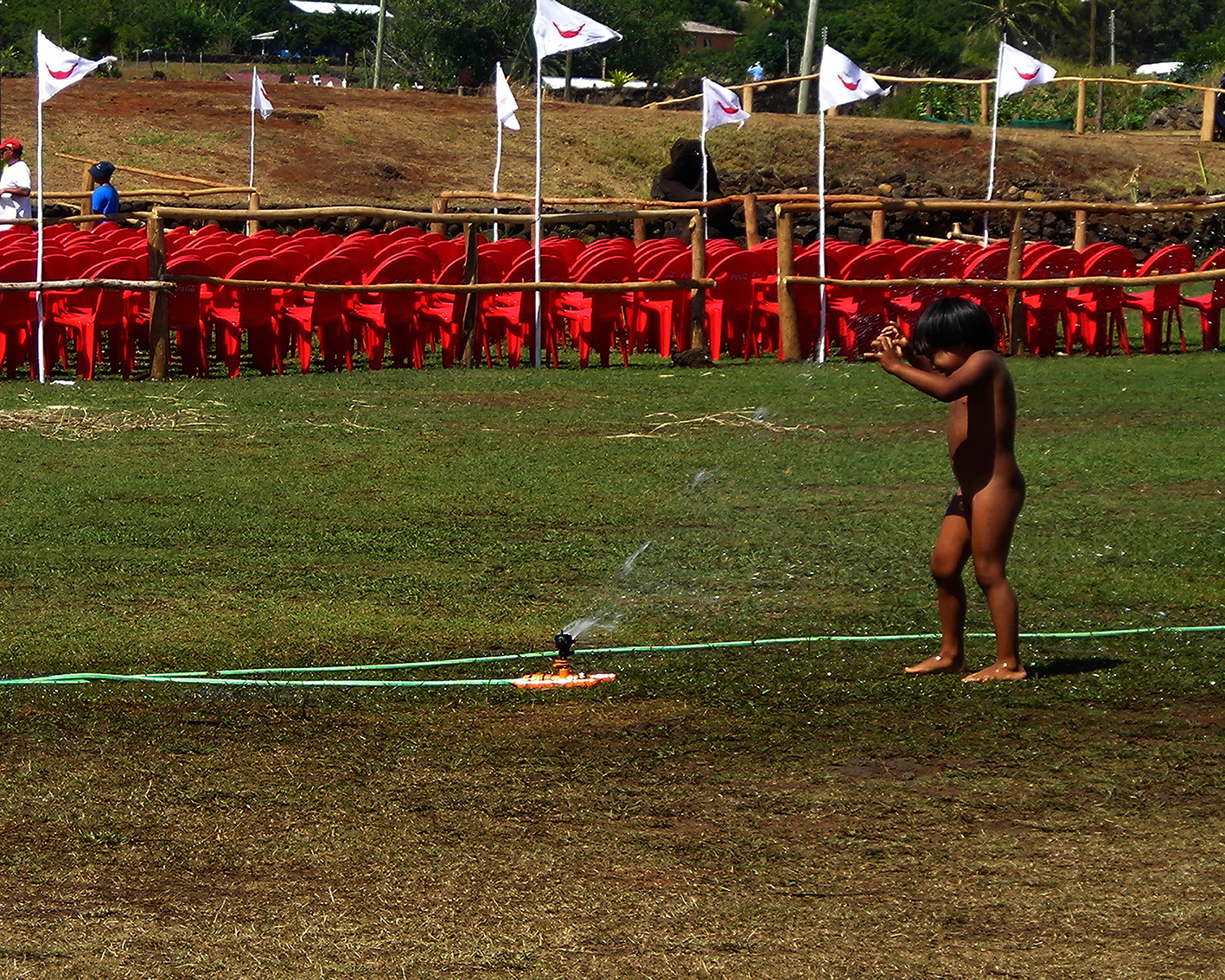 Questa selezione di trenta fotografie nasce da un’esperienza di cinque anni sull’isola, un periodo in cui l’autrice ha potuto immergersi nella vita quotidiana sull’isola, conoscendone usanze, tradizioni e paesaggi nascosti. L’integrazione nella vita locale e il lavoro nel campo della grafica le hanno permesso di affiancare progetti archeologici, contribuendo alle ricerche sulla colonizzazione dell’isola e sull’evoluzione della società rapanui.